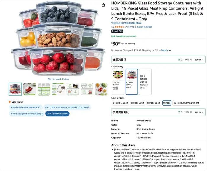 审查变体结构:自2025年10月起,亚马逊已大规模实施“同一个关键词下多个变体自然位”的搜索规则。切勿盲目拆分多变体Listing。相反,应保留并优化现有变体,利用新规让多个子ASIN在搜索结果页同时曝光,叠加自然流量。使用工具(如Sif关键词的“查多变体自然位”功能)分析竞品变体策略,优化自身Listing以抢占更多自然位。