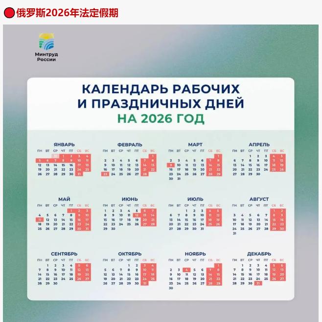 俄罗斯2026年节假日草案发布 发售跨境商品需错峰