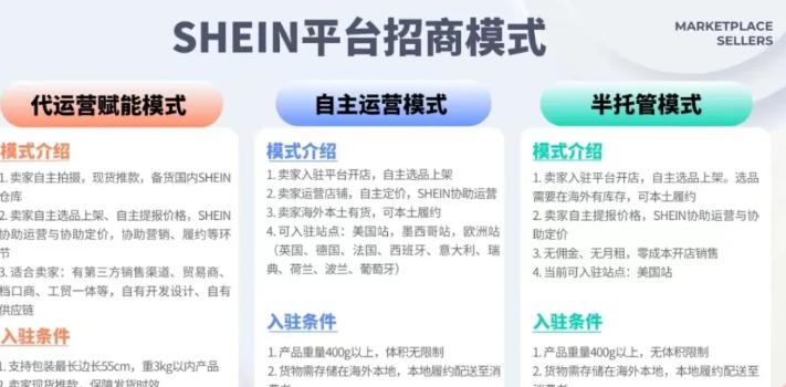 SHEIN介绍可根据不同卖家的特点和需求,平台提供全托管、自主运营和半托管3种不同的模式。