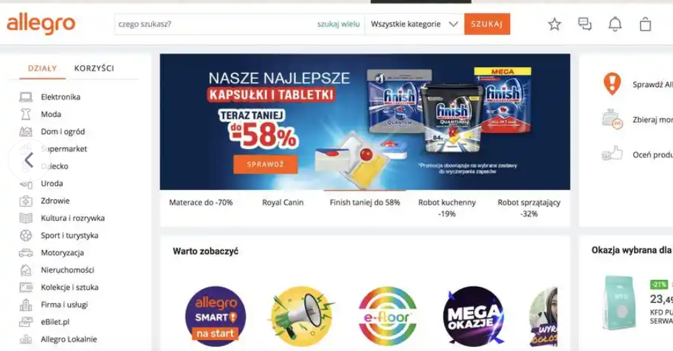Allegro主攻波兰及周边国家(捷克、斯洛伐克、匈牙利等),在波兰市场渗透率超过86%,月活跃用户约2100万,是当地消费者首选的电商平台。它更像“波兰版eBay”,但策略上更注重本地习惯,例如推出Allegro Smart会员计划,提供免运费和快速退货服务,极大提升本地购物体验。
