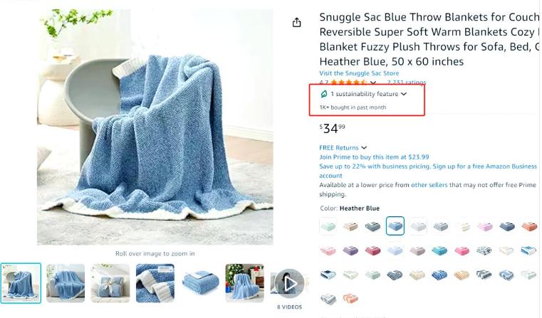 从去年下半年开始,我们注意到亚马逊平台上的绿标数量飙升,特别是在家纺类目中,挂上绿标几乎成了专业商家的标配。其实,申请绿标的认证种类繁多,如果你对此感兴趣,可以在亚马逊后台使用“Climate Pledge Friendly”在帮助中心进行搜索。