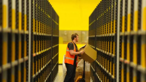 快递员上门取件后,等待物流公司将商品运送至指定仓库。