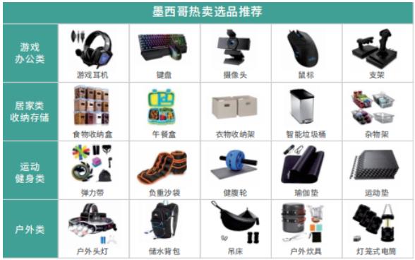 墨西哥人民享受阳光和家庭生活,崇尚家庭集体运动,因此户外和居家类存储商品非常受欢迎。